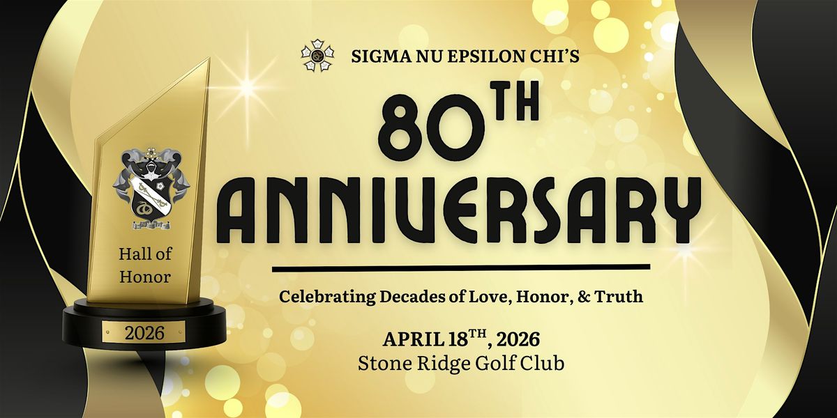 Come celebrate 80 amazing years with the Sigma Nu Epsilon Chi crew. It's a special in-person gathering filled with good vibes, great company, and memories to cherish. Don’t miss out on this chance to reconnect and honor our amazing journey together. Bring your best stories and smiles – it’s going to be a night to remember!