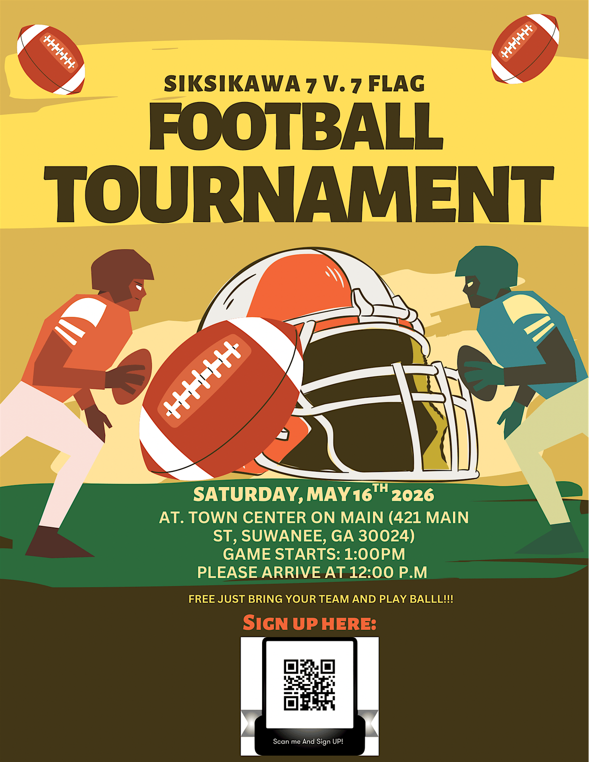 Bragging rights are back! Join our 7v7 Flag Football Tourney in Suwanee, GA on May 16 @ 1 PM. Register now spots are filling fast!