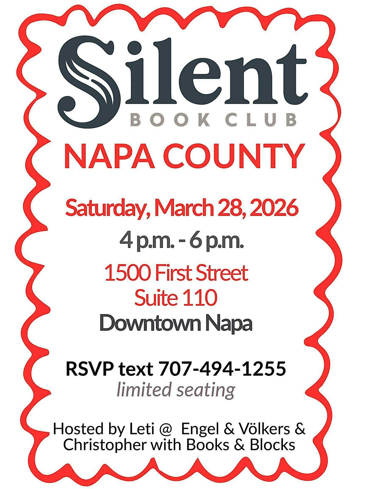 Looking for a chill way to enjoy some quiet reading time and meet fellow book lovers? Join us in person for the Silent Book Club Napa County March MeetUp! Bring your current read or pick something new, grab a cozy spot, and dive into your book surrounded by folks who appreciate the magic of silence and stories. It’s all about relaxing, reading, and maybe sharing a few book recs. Can’t wait to see you there!