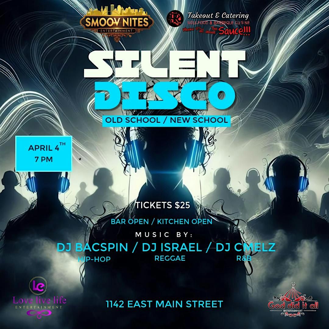 Welcome to the Silent Disco happening at 1142 E Main St on April 4, 2026 at 7:00 PM (Eastern Time)! Get ready to groove to your favorite beats in a unique and fun way. Put on your headphones and dance the night away with friends and fellow music lovers. Don't miss out on this unforgettable experience! Featuring RnB, Reggae, and Hip-Hop hits!