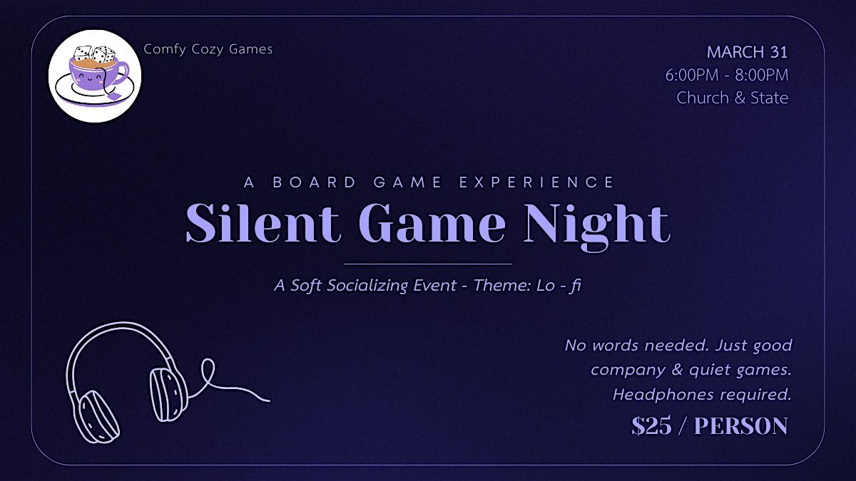 anyone curious about the quiet socializing or anyone who just wants a night out that feels genuinely different. First, a fully silent rotation through carefully chosen games where nonverbal communication is your only tool. We will listen to our shared collaborative lo-fi playlist together throughout the evening; you’ll be able to add your lo-fi songs to the playlist. Please bring your own headphones.