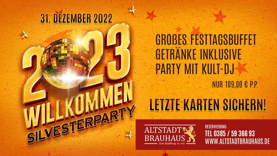 Unsere traditionelle Silvesterparty. Mit großem Festtagsbuffet, Getränke inklusive und Schweriner Kult-DJ.