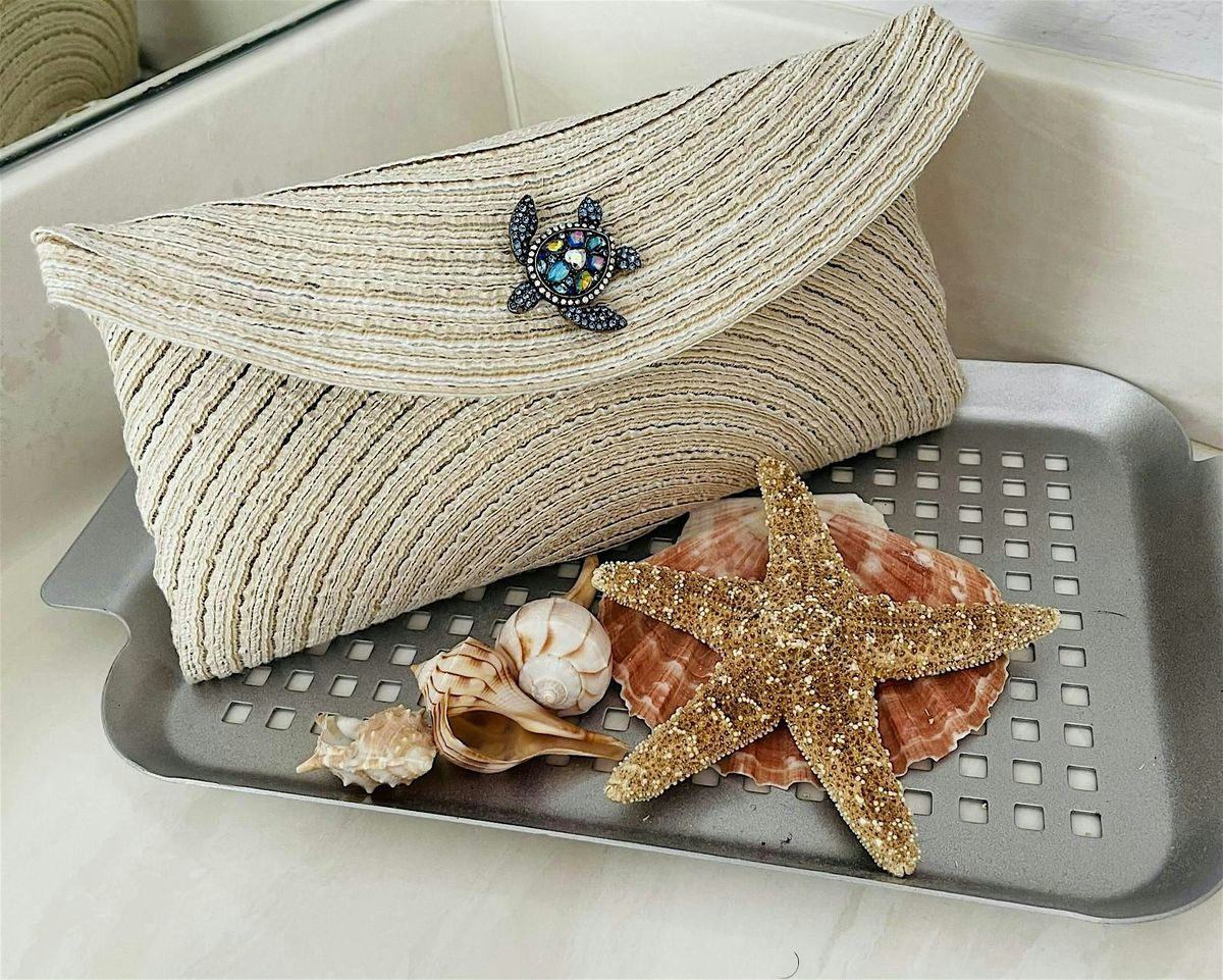Create an envelope snap closure clutch with lining - an easy hand sewing project finished with your choice of a decorative pin- no experience needed. All supplies are provided. Class is taught by Michele Faulkner.