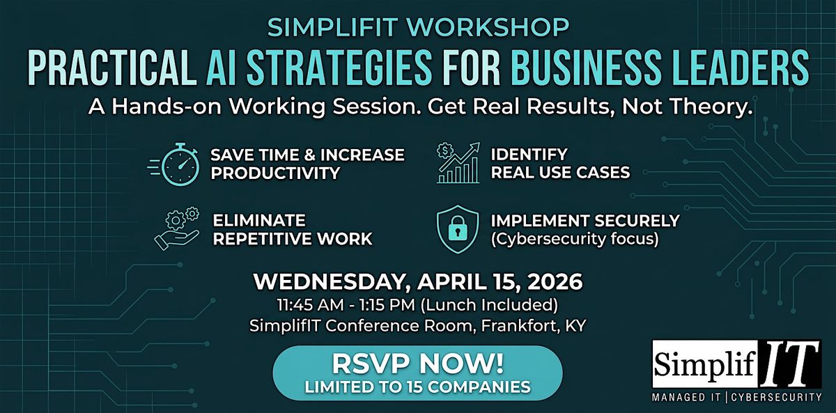 Join us at the SimplifIT Conference Room in Frankfort, KY on April 15, 2026, and walk away with clear, actionable steps you can implement immediately.