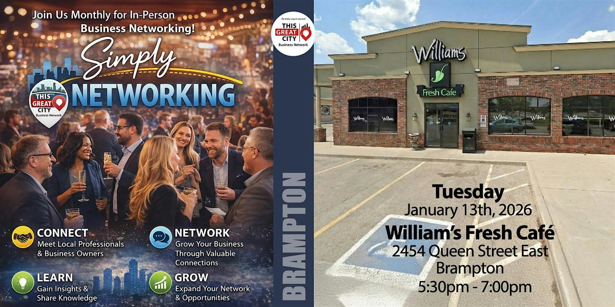 Join us for Simply Networking – Brampton, an engaging, relaxed, and purposeful in-person networking event designed for small business owners, entrepreneurs, and professionals who believe that real connections still matter.