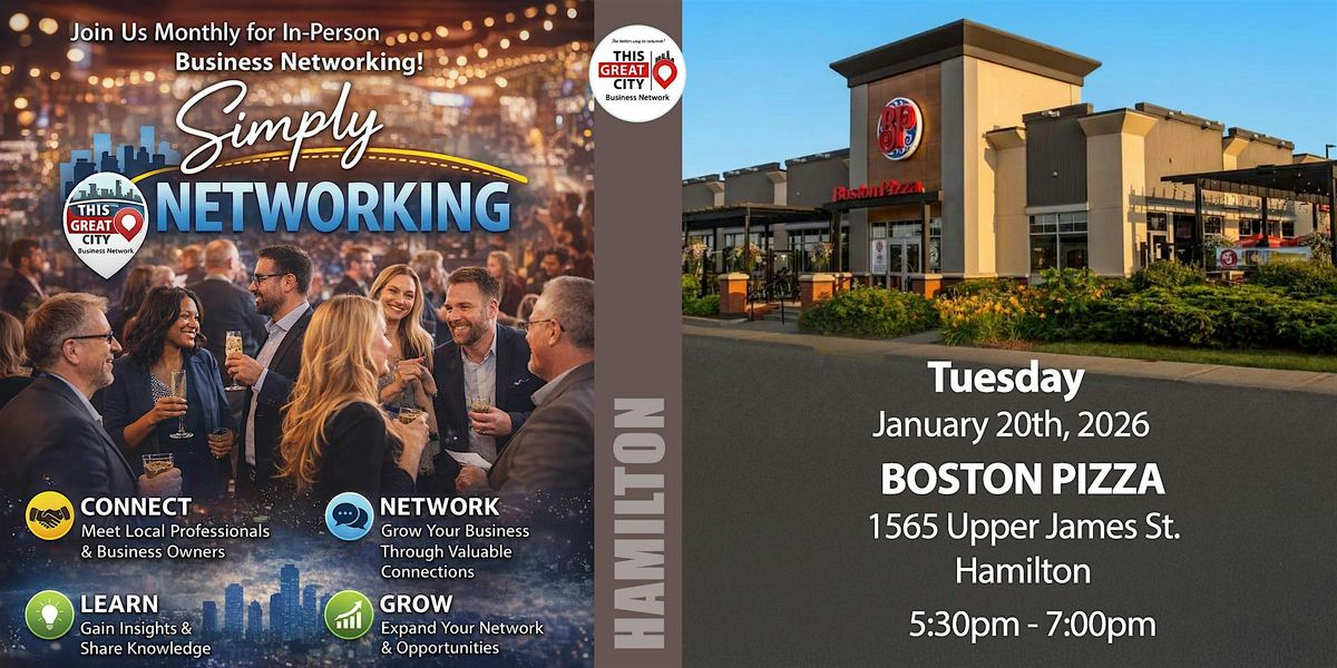 On Tuesday, January 20th, 2026, weβre bringing the local business community together at Boston Pizza on Upper James Street for an evening of meaningful conversations, new introductions, and relationship-building that goes beyond business cards.