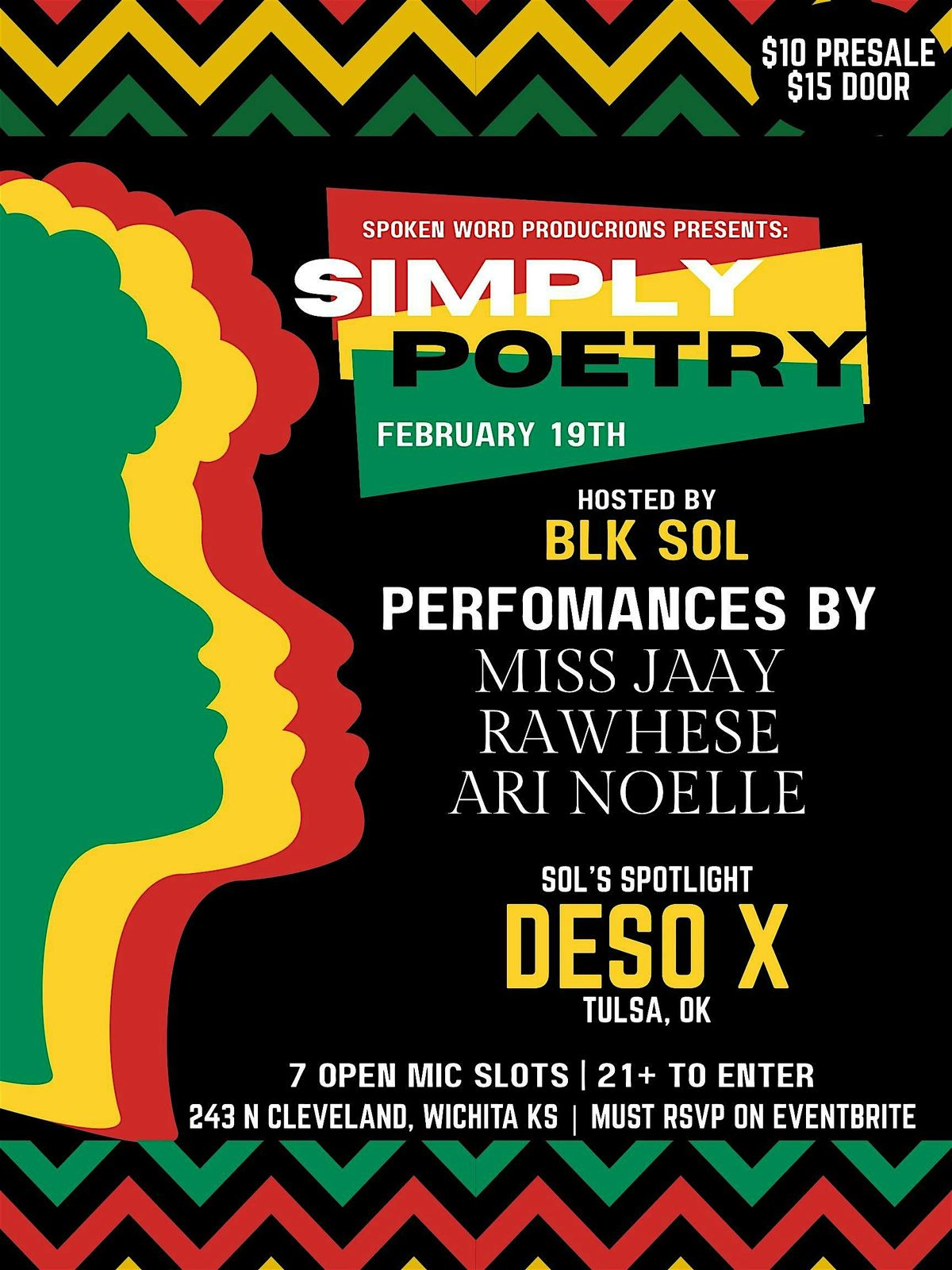 Get ready for a night full of words and vibes at Simply Poetry featuring the amazing Deso X! If you’re in Wichita, KS, come through for some authentic, heartfelt performances. This one’s in person, so bring your energy and love for poetry. Whether you’re a fan or just curious, it’s gonna be a chill, inspiring evening you won’t wanna miss!