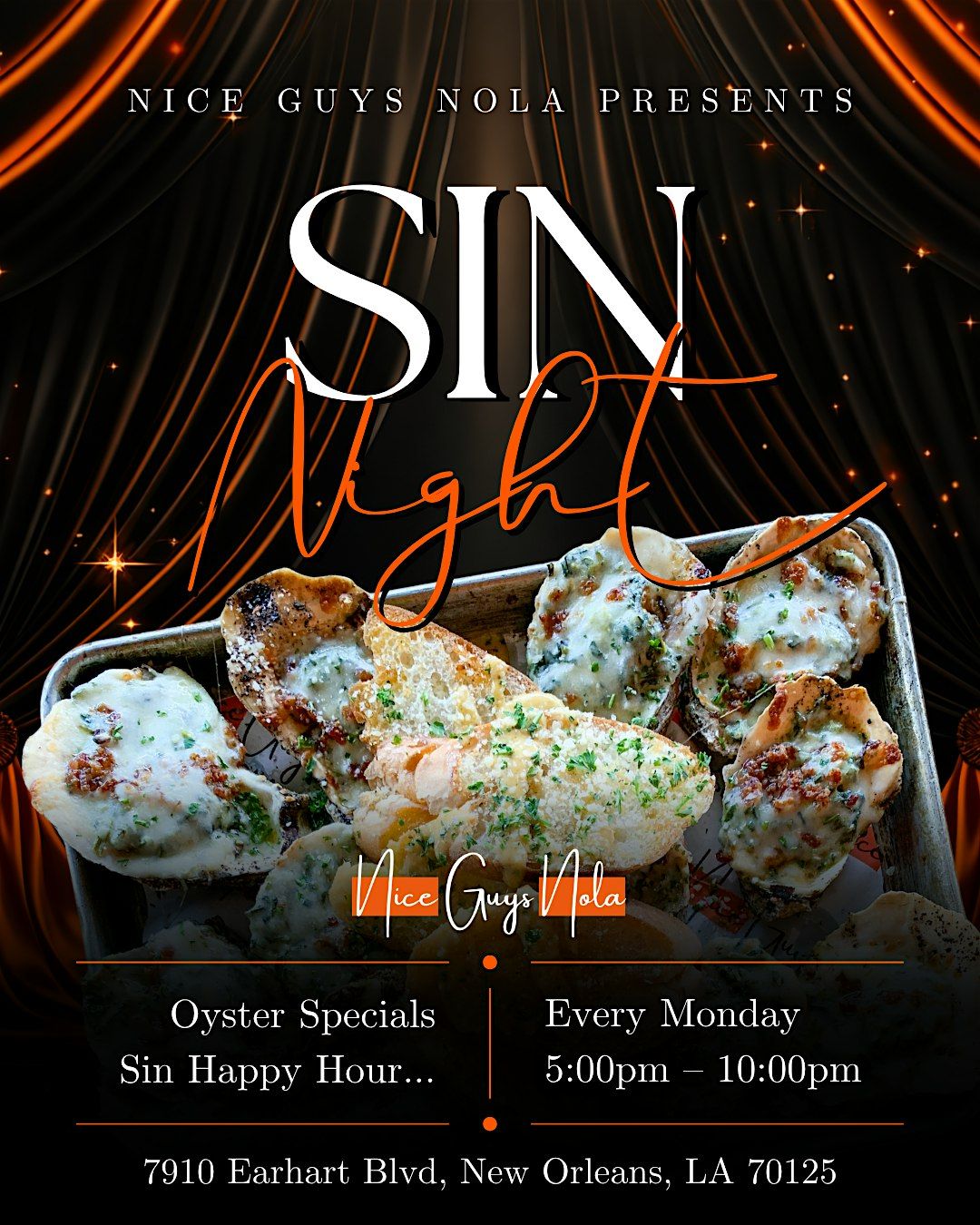 Join us every Monday from 5PM–10PM for Sin Night at Nice Guys NOLA — where the vibes are smooth, the drinks are flowing, and the indulgence is encouraged.