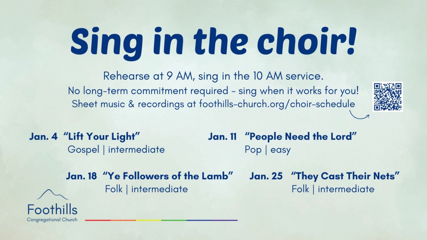 Gospel | Intermediate: Fair music-reading skills would help you learn this in our single rehearsal, especially if you've looked at the music, and listened to the recording on our website https://www.foothills-church.org/choir-schedule