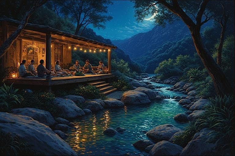 You’re invited to a deeply restorative outdoor soundbath held beside a flowing creek, where Tibetan singing bowls, crystal bowls, and subtle instruments blend seamlessly with singing frogs, water, and the night sounds of nature. The deep, resonant tones of the Tibetan bowls help ground the body and slow the mind, creating a steady foundation for relaxation as the natural soundscape unfolds.