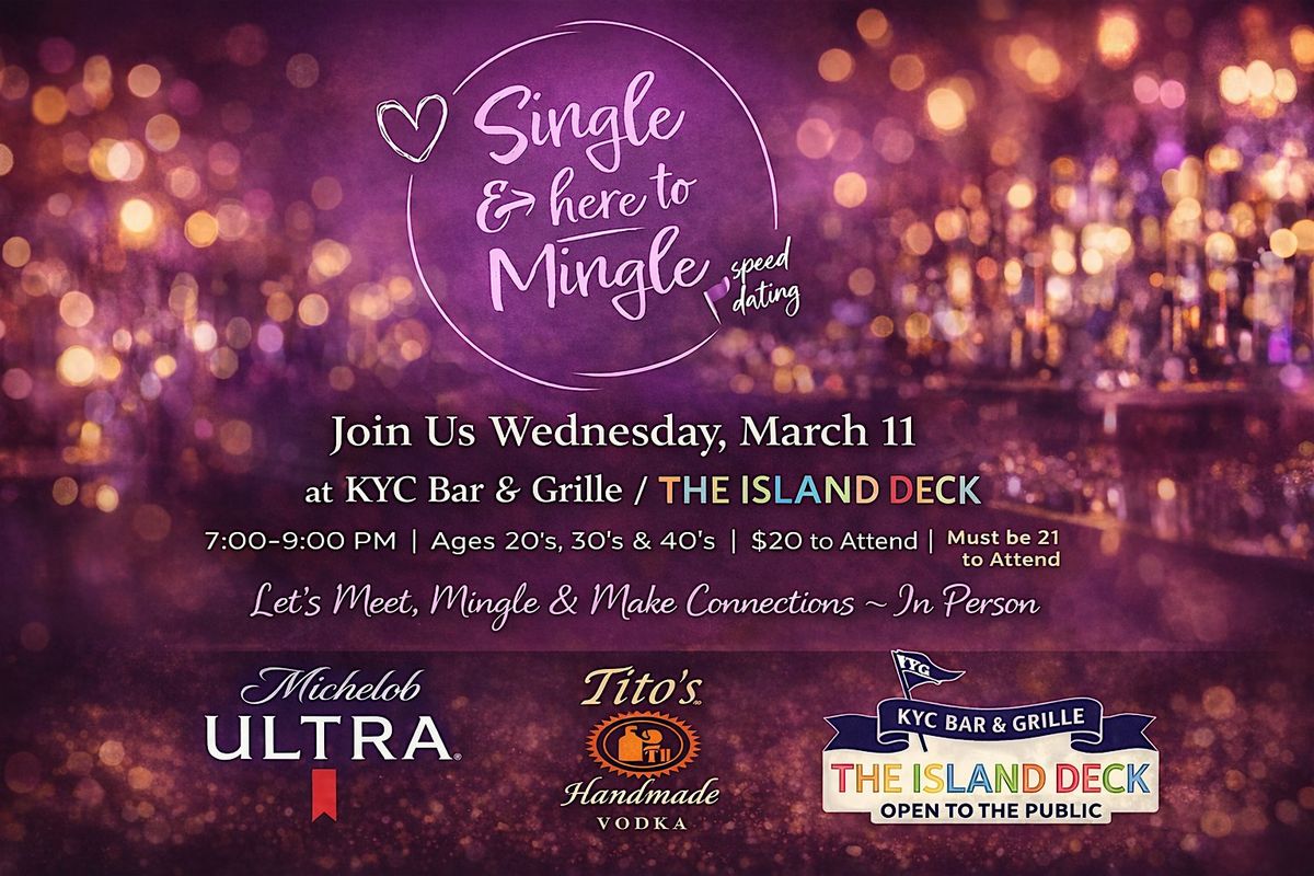 Ready to meet new people and have some fun? Join our Single & here to Mingle event for an awesome night of speed dating and great conversations. It's all happening in person, so get out there, be yourself, and maybe find that special connection. No pressure, just good vibes and new faces! ages 20's, 30's, & 40's for this event, must be 21 to attend
