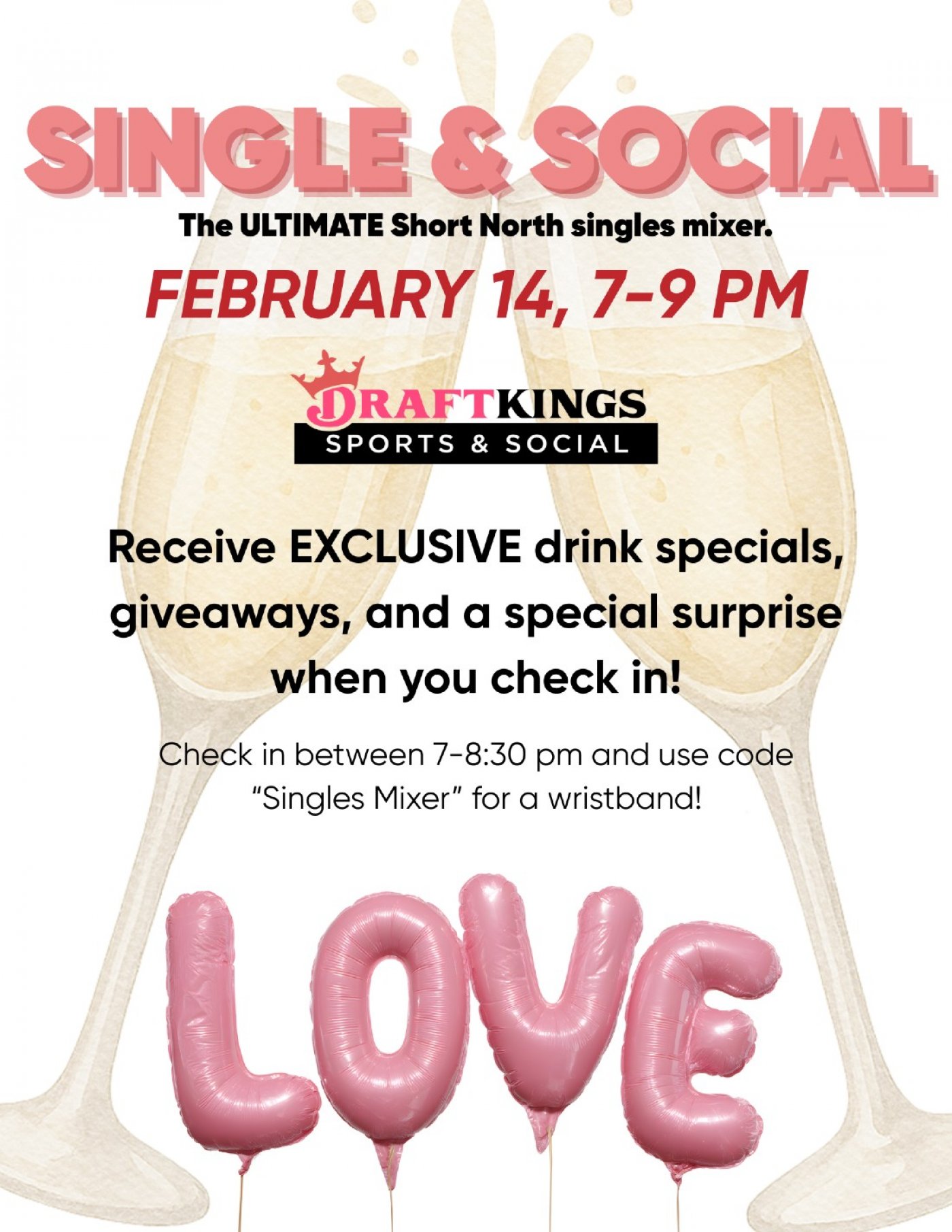 SayĀ āSingles MixerāĀ at the host stand to receive your wristband and access all the Valentineās Day perks! š