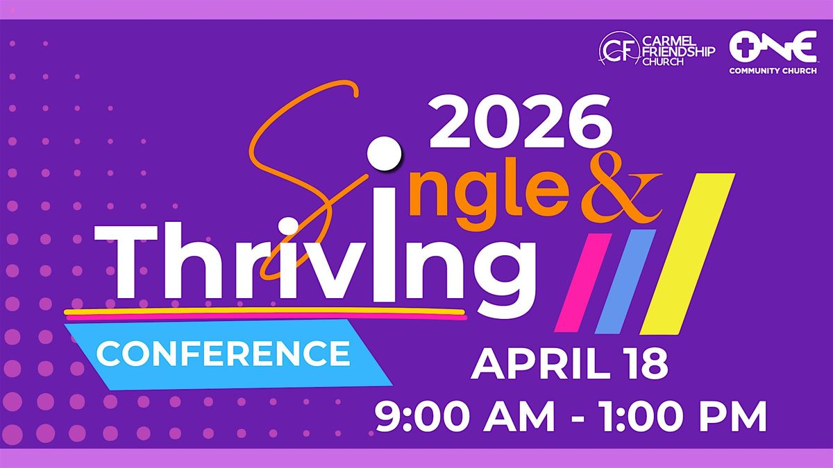 Join us for the 2026 Single & Thriving Conference at Carmel Friendship Church on April 18, 9 AM–1 PM (registration at 8 AM). Featuring Jada Edwards, Dr. Conway Edwards, and Pastor Quincy Stratford. Connect, be encouraged, and grow in faith. Tickets: $40.