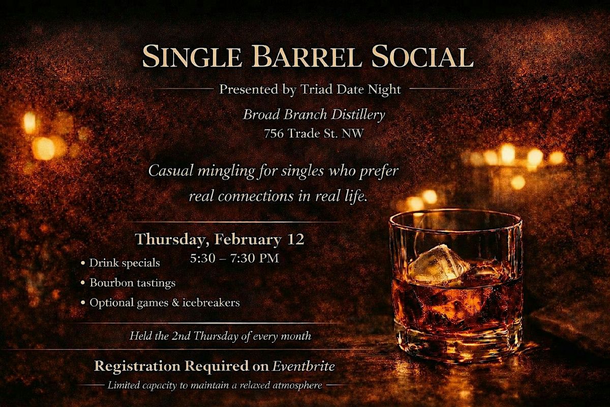 Come join us at Broad Branch Distillery for an after work singles social on February 12, 2026 at 5:30 PM.