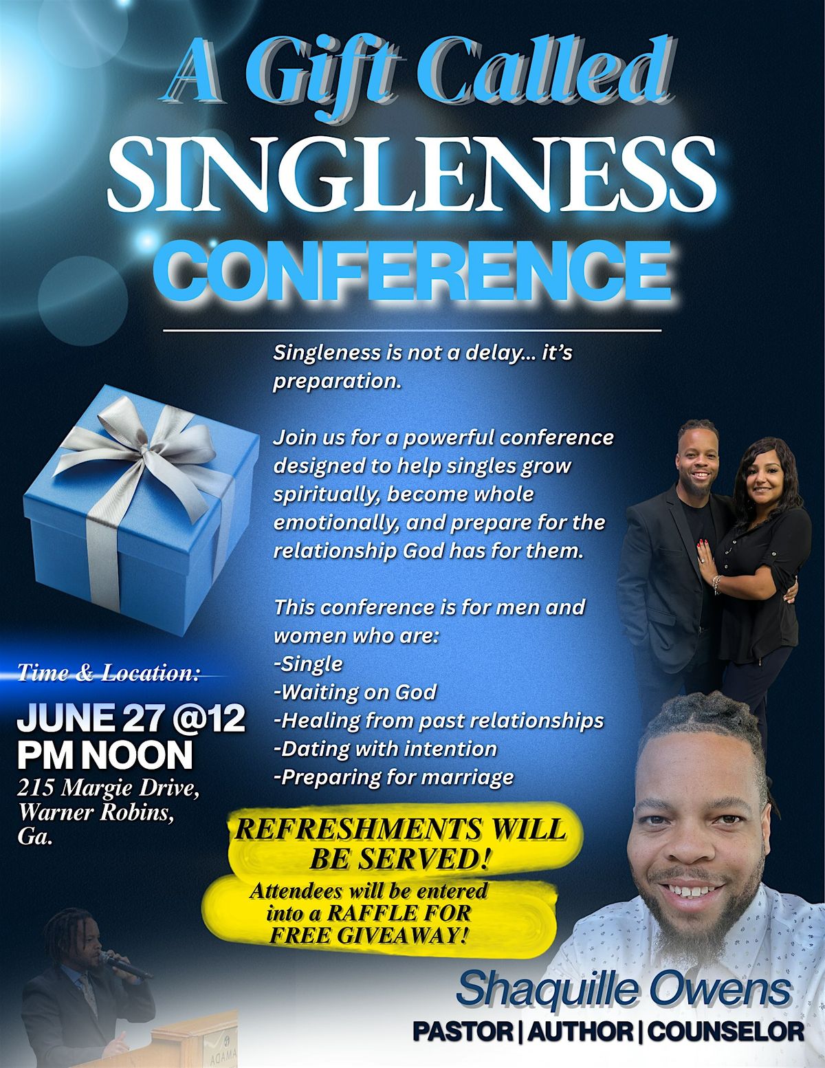 Join us for a powerful conference designed to help singles grow spiritually, become whole emotionally, and prepare for the relationship God.