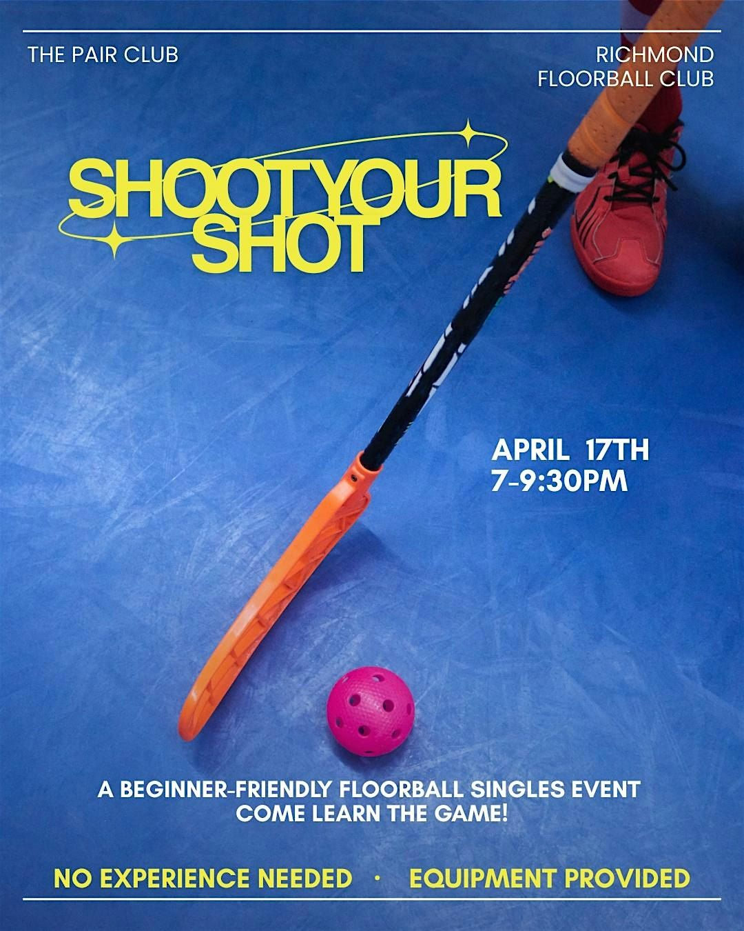 We’re teaming up with Richmond Floorball Club to create a beginner-friendly singles event where connection happens through movement, shared play, and trying something new together.