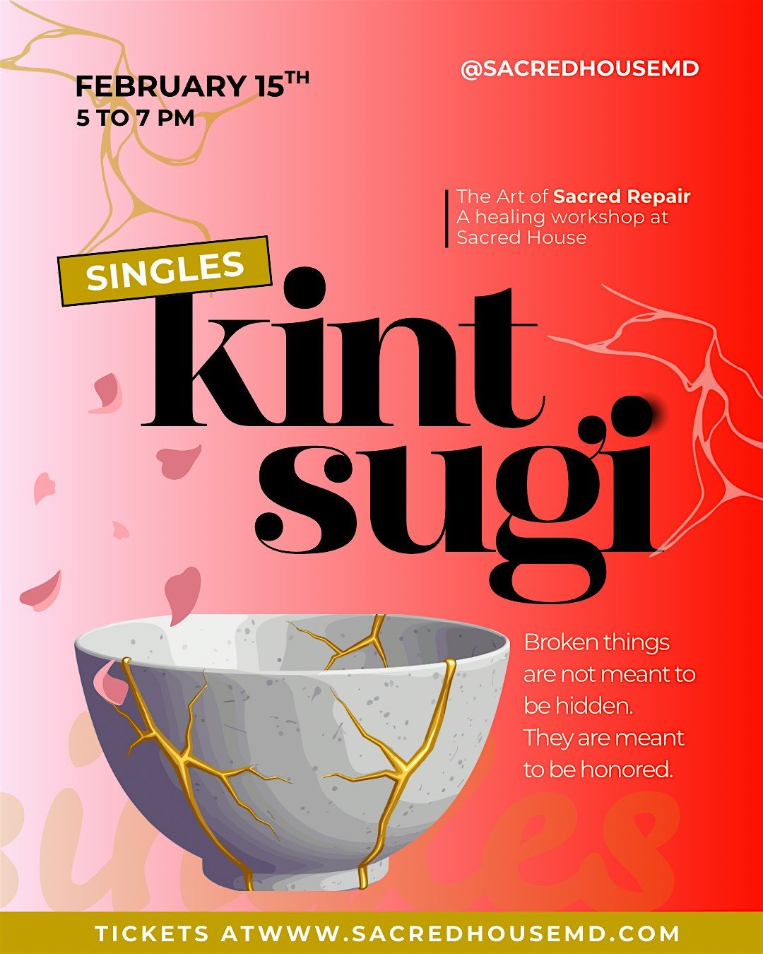 Join us for a fun Singles Kintsugi Workshop where you’ll mend pottery and maybe hearts too!About this Event