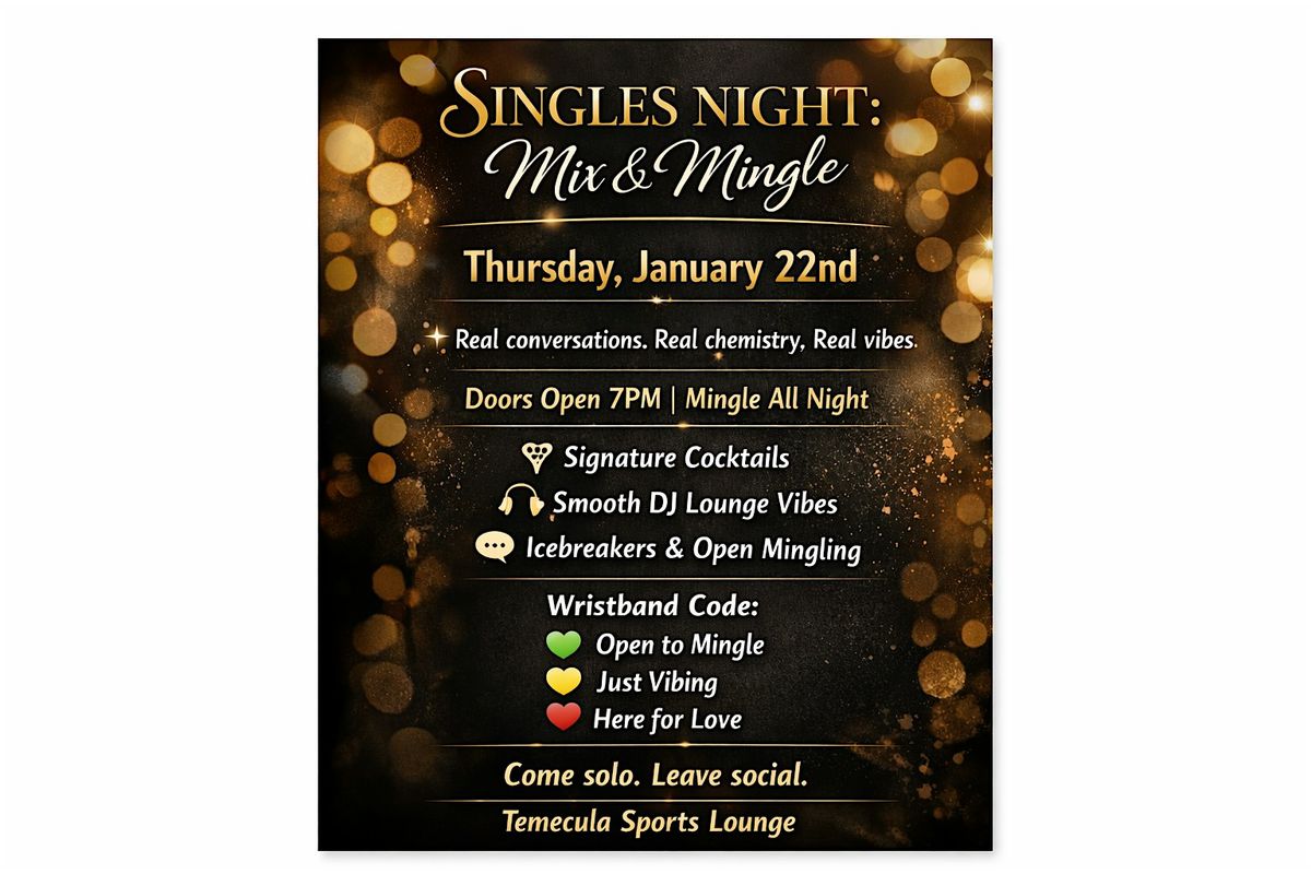 Join us for Singles Night: Mix & Mingle β a Thursday night experience designed for real conversations, real chemistry, and great vibes.