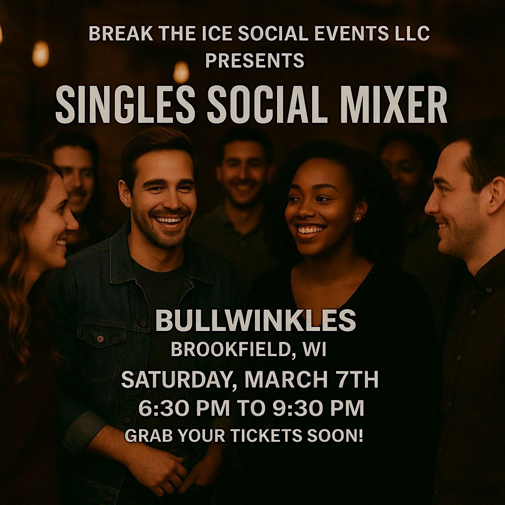Welcome to Singles Social Mixer Brookfield, WI Bullwinkles at Bullwinkles at the Galleria! Get ready to mingle with other singles in your area on March 7, 2026 at 6:30 PM (Central Time). It's going to be a night filled with fun conversations, laughter, and who knows, maybe even a spark of romance! Don't miss out on this opportunity to meet new people and enjoy a great evening. See you there!
