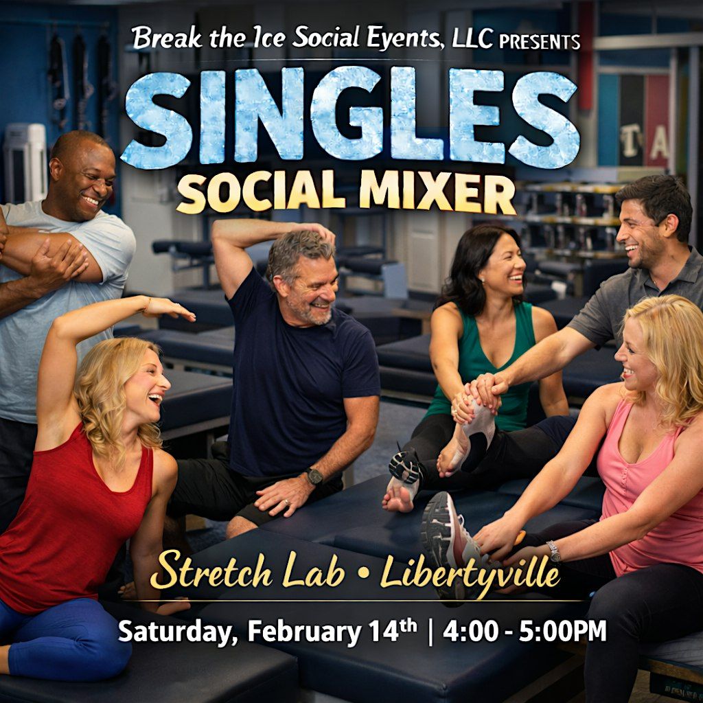 Welcome to the Singles Social Mixer Libertyville, IL at StretchLab! Get ready to mingle and meet new people on February 14, 2026 at 5:00 PM (Central Time). It's the perfect opportunity to make connections, have fun, and maybe even find a special someone. Don't miss out on this exciting event to kick off your Valentine's Day celebrations! See you there!