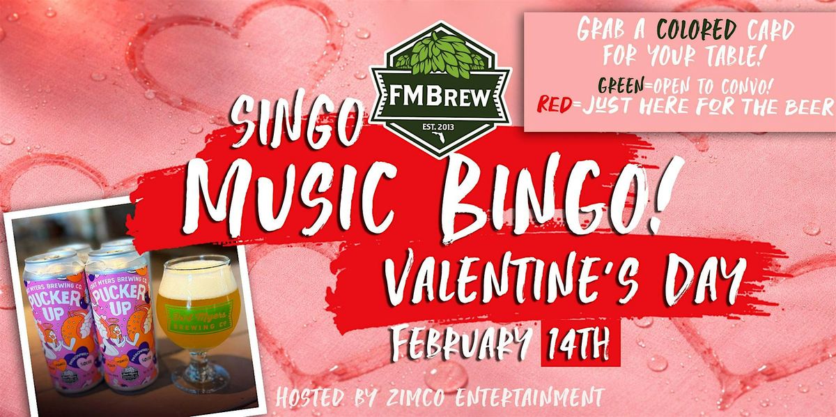 Single, married, coupled, complicated… whatever! We want you to stop by the #FMBrew taproom on February 14th, because Valentine’s Day is better with beer! Doors open at noon with That BBQ Place, so come early, grab a beer, and settle in. Live music from Austin James from 2–5pm.Looking to mingle — or just here to relax? Grab a colored card for your table! Green = open to convo, Red = just here for the beer. No pressure, no awkward guesswork — just a good time!At 5:30pm, One More Bite Organic will be here with desserts to sweeten things up before the main event. Singo – Music Bingo kicks off at 6pm, hosted by ZIMCO Entertainment, and it’s FREE to play!Whether you’re here with friends, a date, or flying solo, this is a laid-back, no-pressure way to spend Valentine’s Day. Come early, stay late, and enjoy the love, the music, and (of course) the beer.
