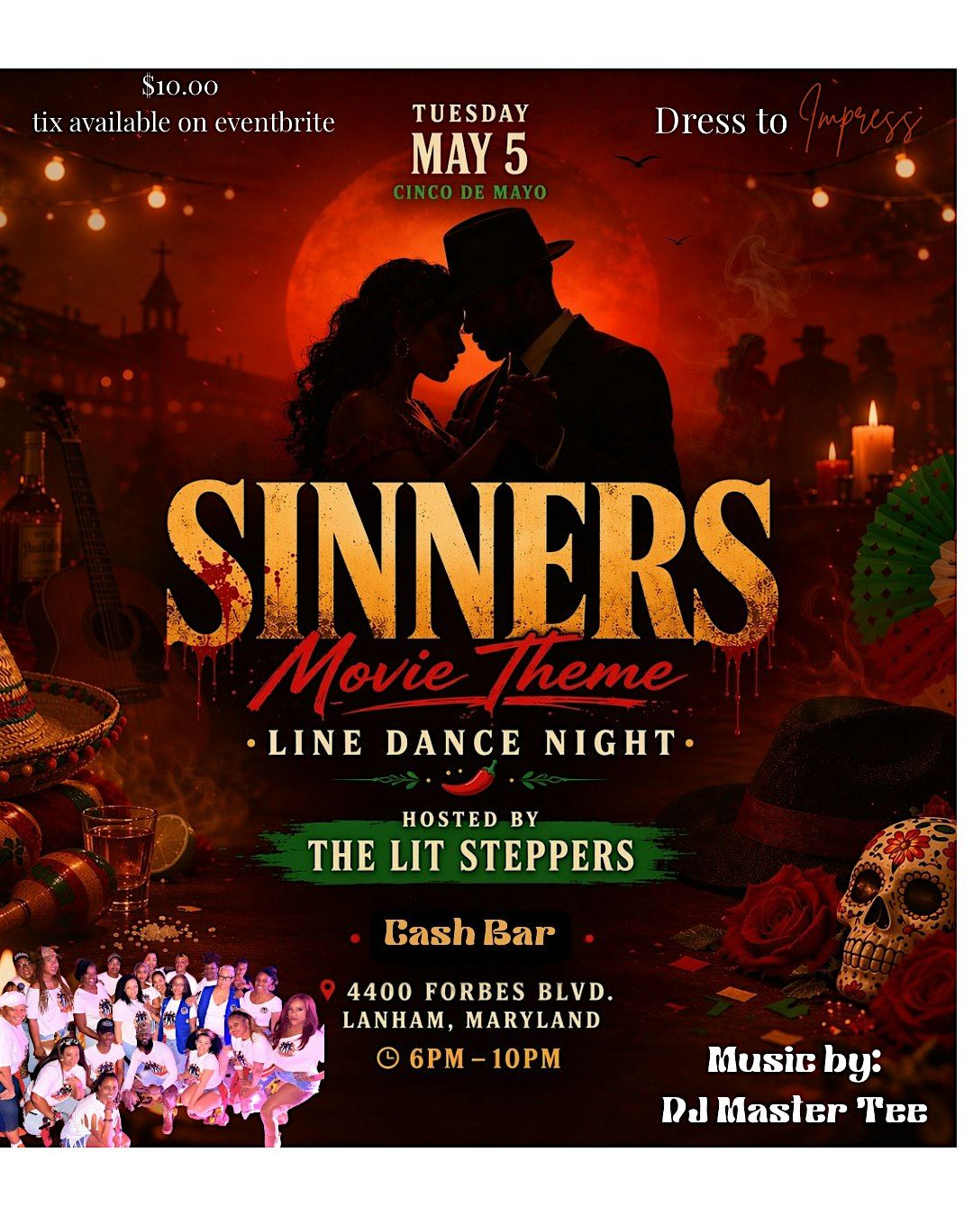 This Cinco de Mayo come out and party with LaShea Iyonna and the lit Steppers as we host a sinners Line dance theme party.