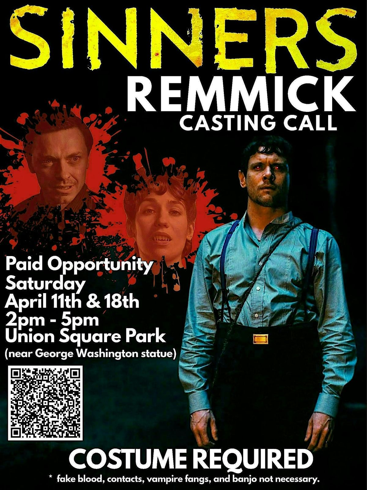 The casting call will be held in Union Square Park near the George Washington Statue. (A green statue of a man mounted on a horse, directly across the street from Whole Foods Market.) You will be given a consent release form and asked a few questions. Recording will take place as I intend to create content from the casting for my social media channels. You are required to dress up, a blue button down shirt, dress pants, and suspenders. A similar attire to Remmick. If you attend the first casting call on April 11th, you do not need to appear at the 2nd call on April 18th. By May 1st, please watch the movie if you haven't already.
