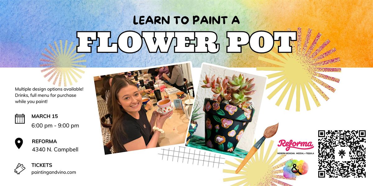 Join us for margaritas, art and fun at indoor Reforma Modern Mexican! Get ready for a creative, fun-filled night of socializing at this “Flower Pot” paint party! Whether you’re an experienced artist or just looking for a memorable experience, this paint and sip promises an approachable, artistic activity for friends, family and couples.
