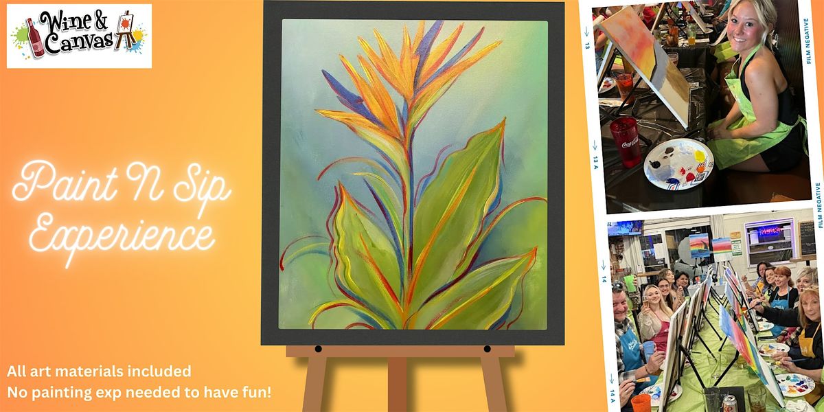 Join us for a vibrant and relaxing painting Sip and Paint event as we create “Bird of Paradise,” a bold, tropical bloom bursting with lively colors and island energy. This stunning floral piece is perfect for anyone who loves warm weather vibes and expressive brushstrokes.
