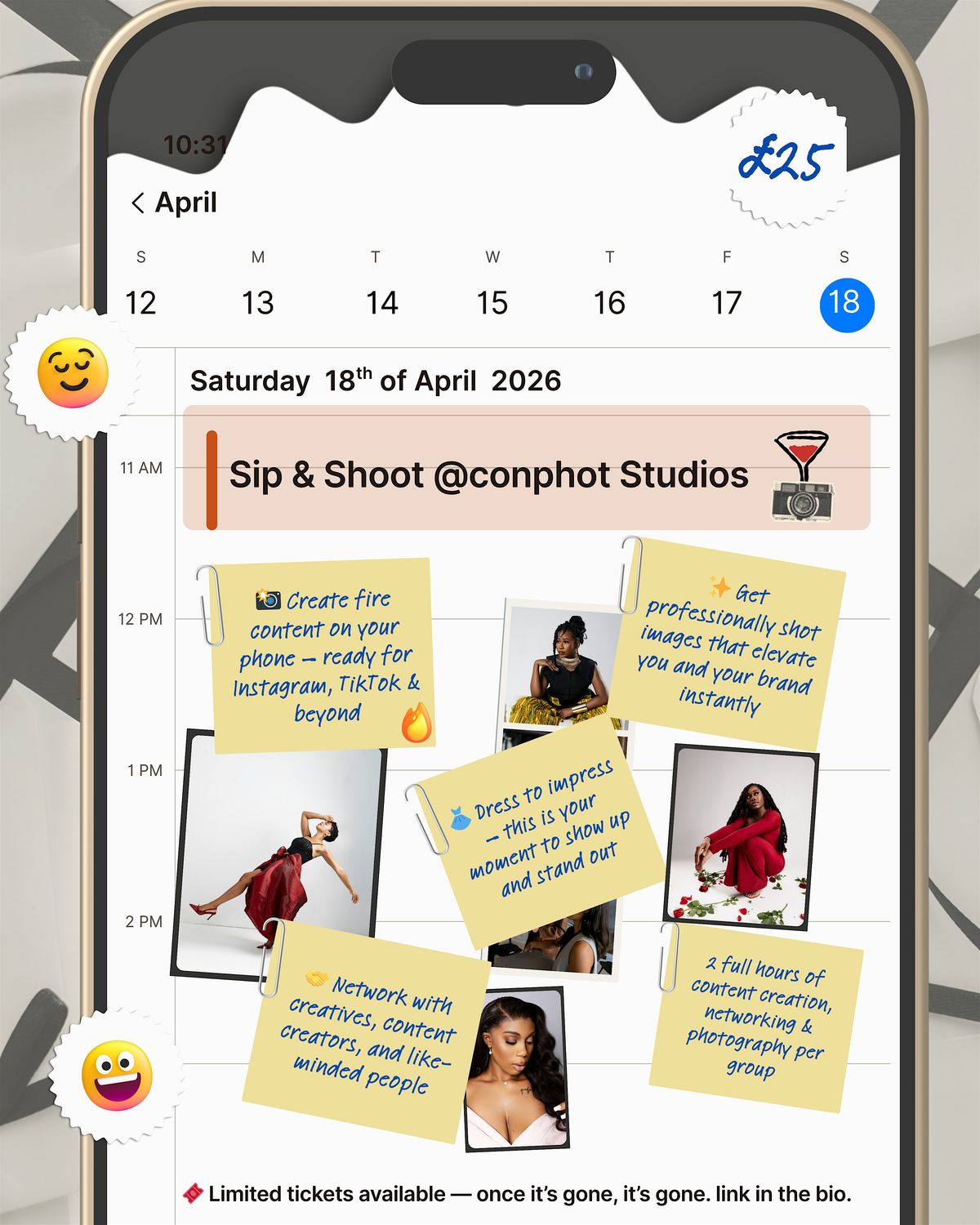 - π¬ 2 full hours of content creation, networking & photography per group