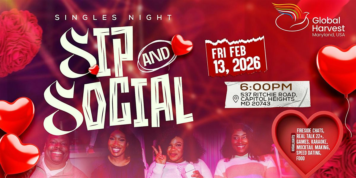 Looking for a chill night out? Sip and Social is the place to be! Come hang with friends, enjoy good conversations, great drinks, and soak up the awesome vibe. This is an in-person singles only event, perfect for meeting new people or just kicking back. Don’t miss the fun,grab your crew and get ready to sip, chat, and make some cool memories!