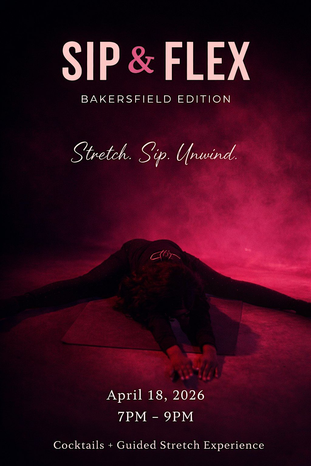 Come join us for an Oh-So-Flexy Experience of stretching and flexibility at our flex and sip event! This will be a music-guided flexibility experience designed to give you confidence and move your body in a way that your body will love.