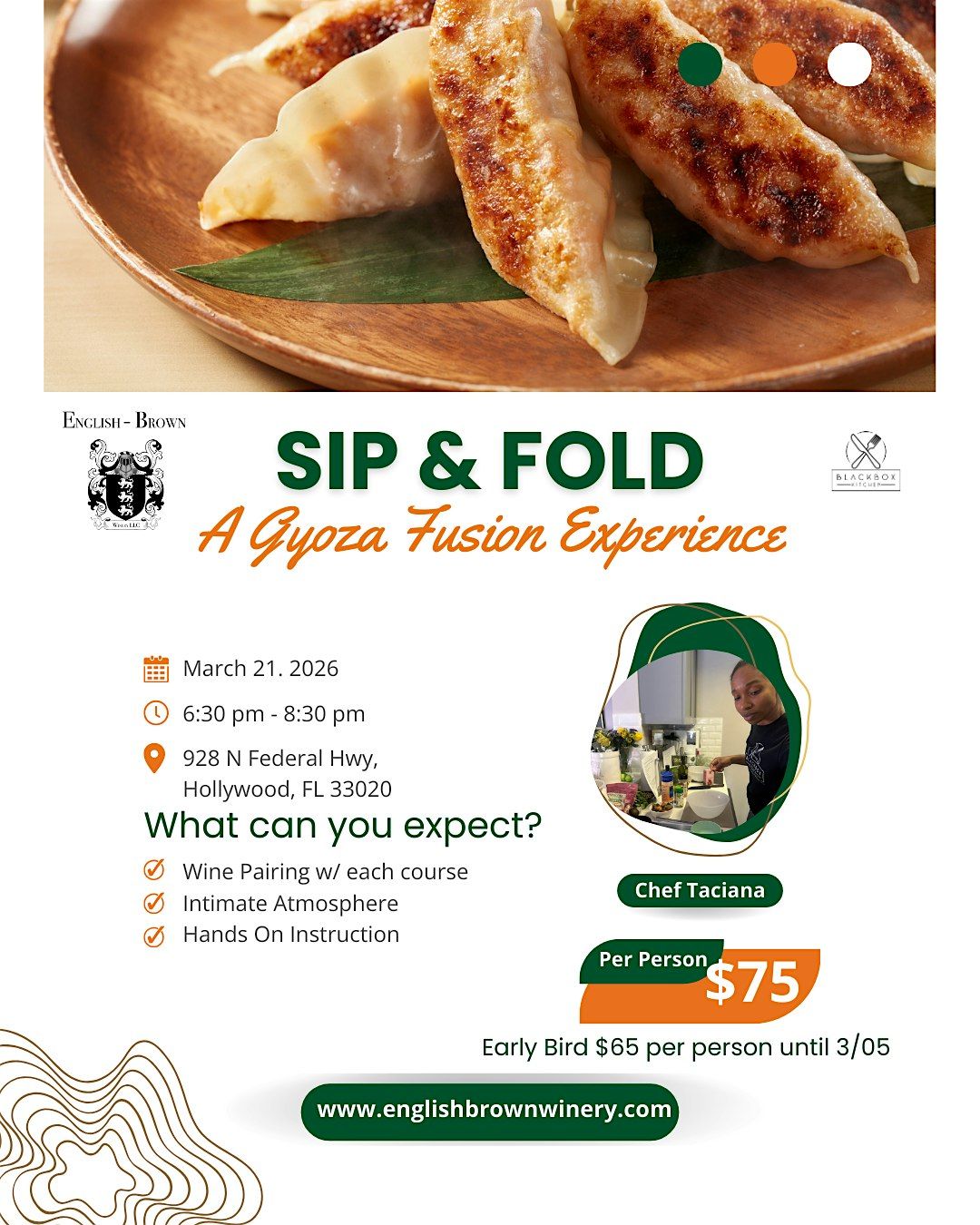 Join us at English-Brown Winery for Sip & Fold: A Gyoza Fusion Experience, a hands-on cooking and wine tasting night inspired by bold Asian–Latin fusion. Guests will learn how to fold and prepare flavorful gyoza with a creative twist, paired with complementary sides, a sweet finish, and curated wines throughout the evening.