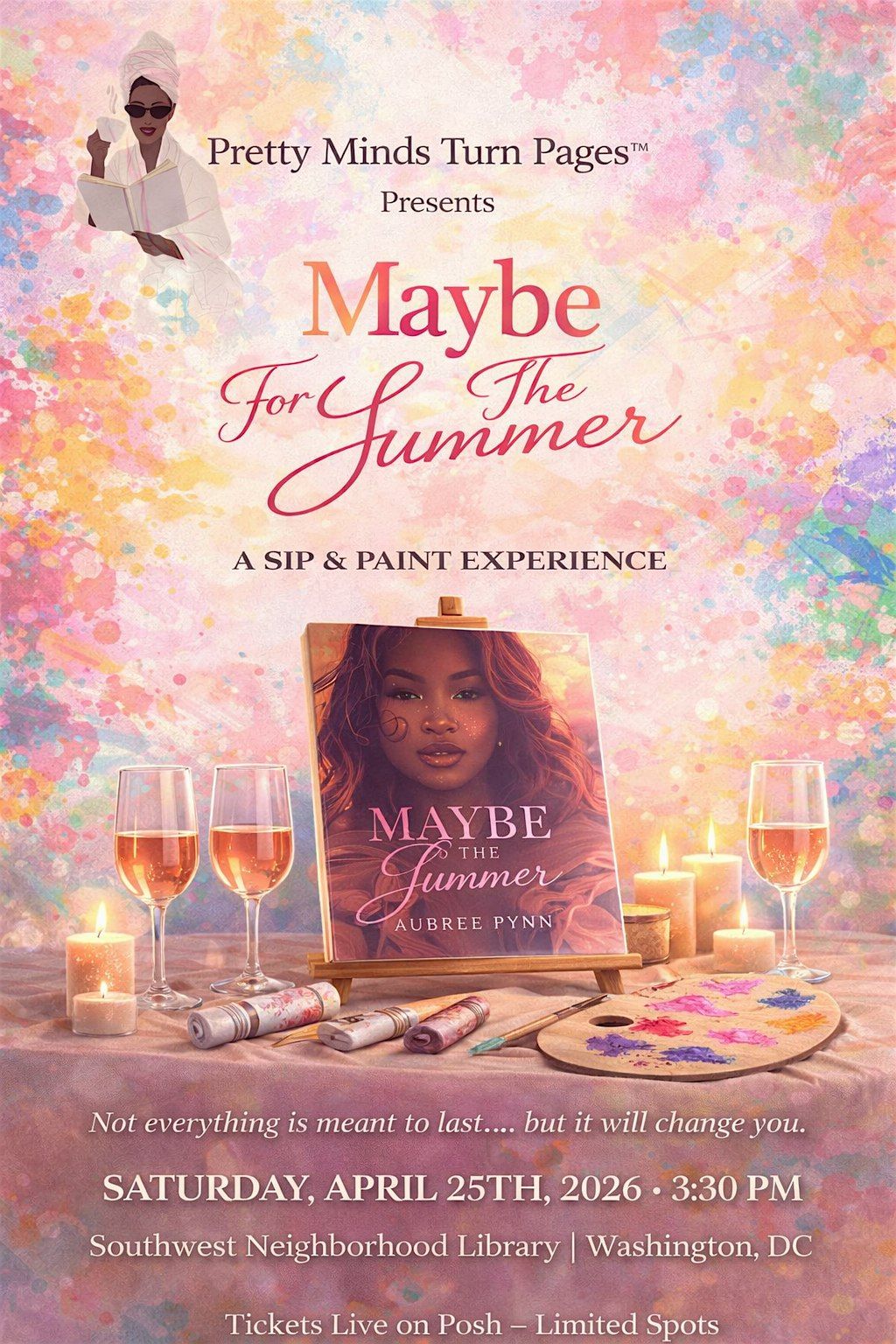 Pretty Minds Turn Pages™ invites you to a curated Sip & Paint experience inspired by Maybe for the Summer by Aubree Pynn.