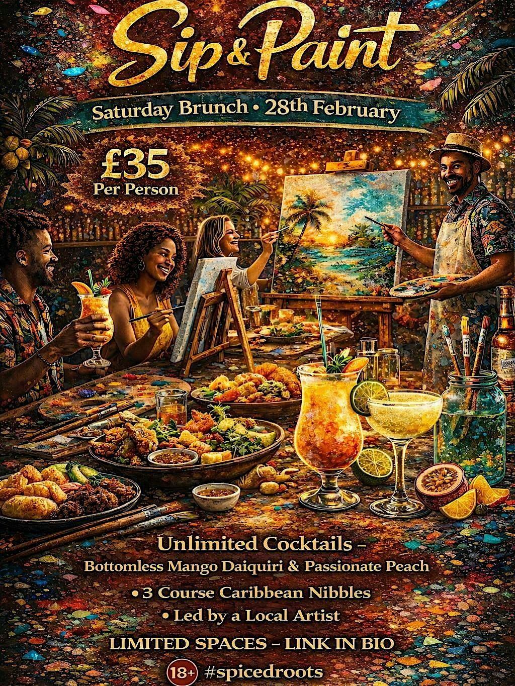 Join us at Spiced Roots for a relaxed Sip & Paint Brunch, creativity, vibes and great drinks in a laid-back Caribbean setting.