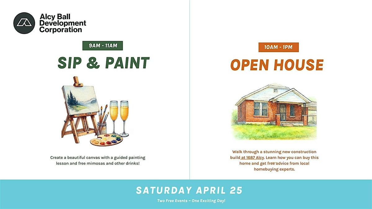 Start your day creating art, enjoying free mimosas, and learning about home buying with neighbors at our Sip & Paint (9–11 AM)—paint a beautiful canvas while learning what it takes to own a home. Experts will be onsite offering more information to help make homeownership a reality for you (it's more attainable than you think!).