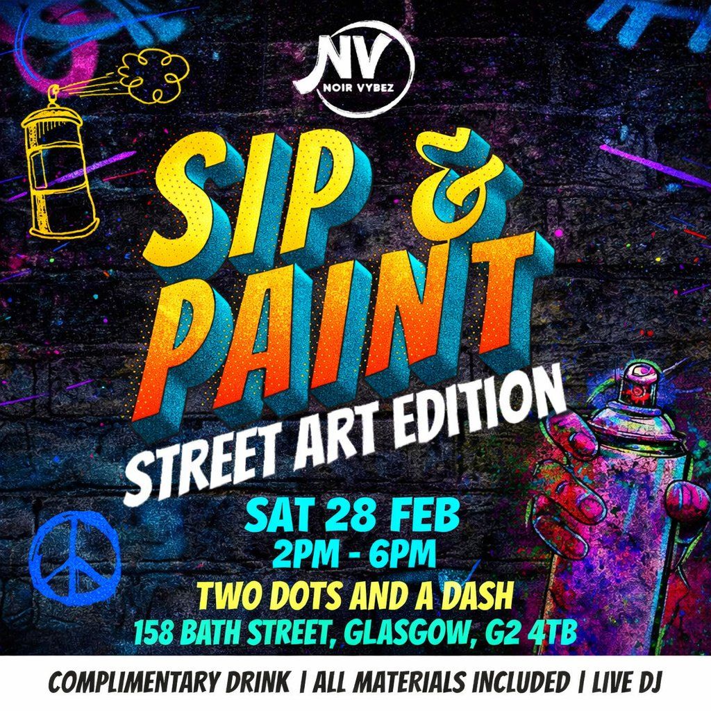 An immersive Sip & Paint experience with a street art twist. All materials included, complimentary drink & live DJ.