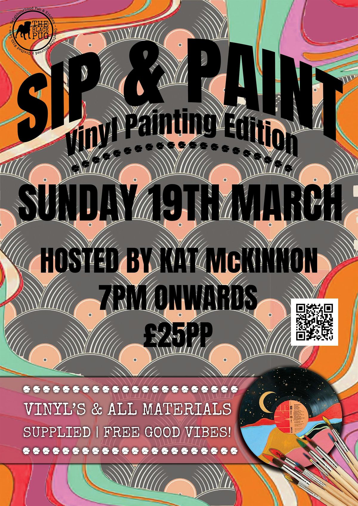 Join us on Thursday 19th March from 7pm – 10pm for a creative night out with a twist at our Sip & Paint – Vinyl Painting Edition.