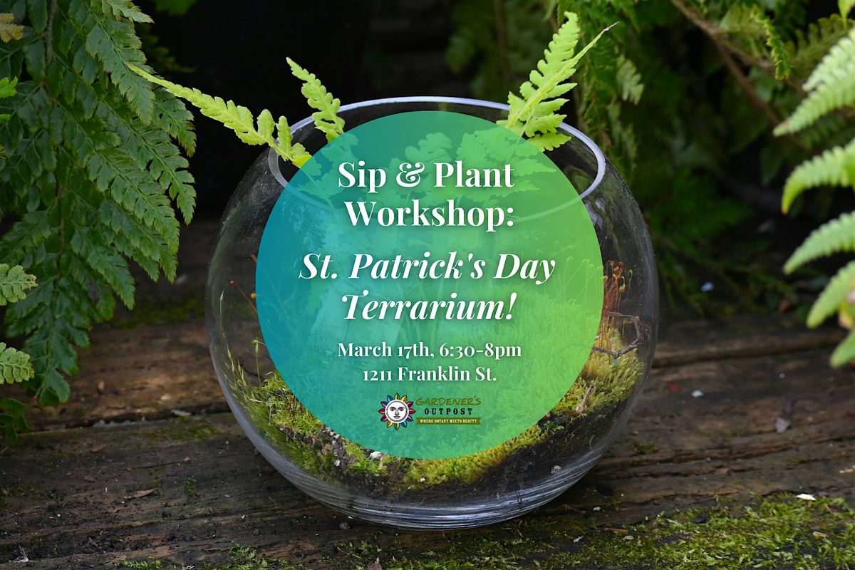 Join us on March 17th from 6:30–8:30pm for a St. Patrick’s Day Terrarium Sip & Plant Workshop at Gardener's Outpost on Franklin Street! Sip on drinks from our beer and wine bar while crafting your own festive glass terrarium filled with lush moss, ferns, and themed decorations. All materials are provided so you can enjoy a fun, relaxing night of plants and drinks!