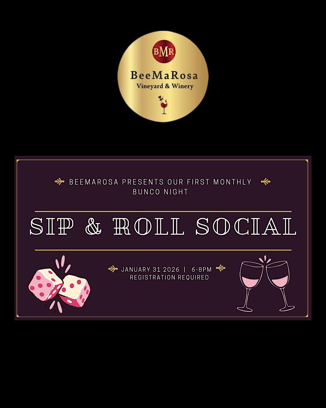 It’s free to play — and no experience is needed. Just come ready to have fun, roll some dice, sip delicious BeeMaRosa wine, and make new friends.