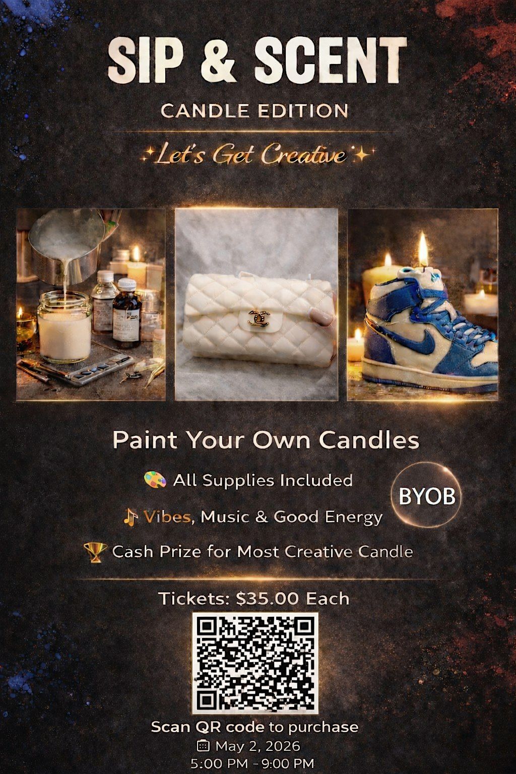 Step into a whole vibe at Sip & Scent Paint your own candle edition, sip your favorite drinks (BYOB), and vibe out to the 90s and 2000’s