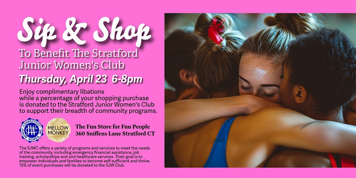 You're invited to Mellow Monkey's Sip & Shop Event to benefit The Stratford Junior Women's Club.