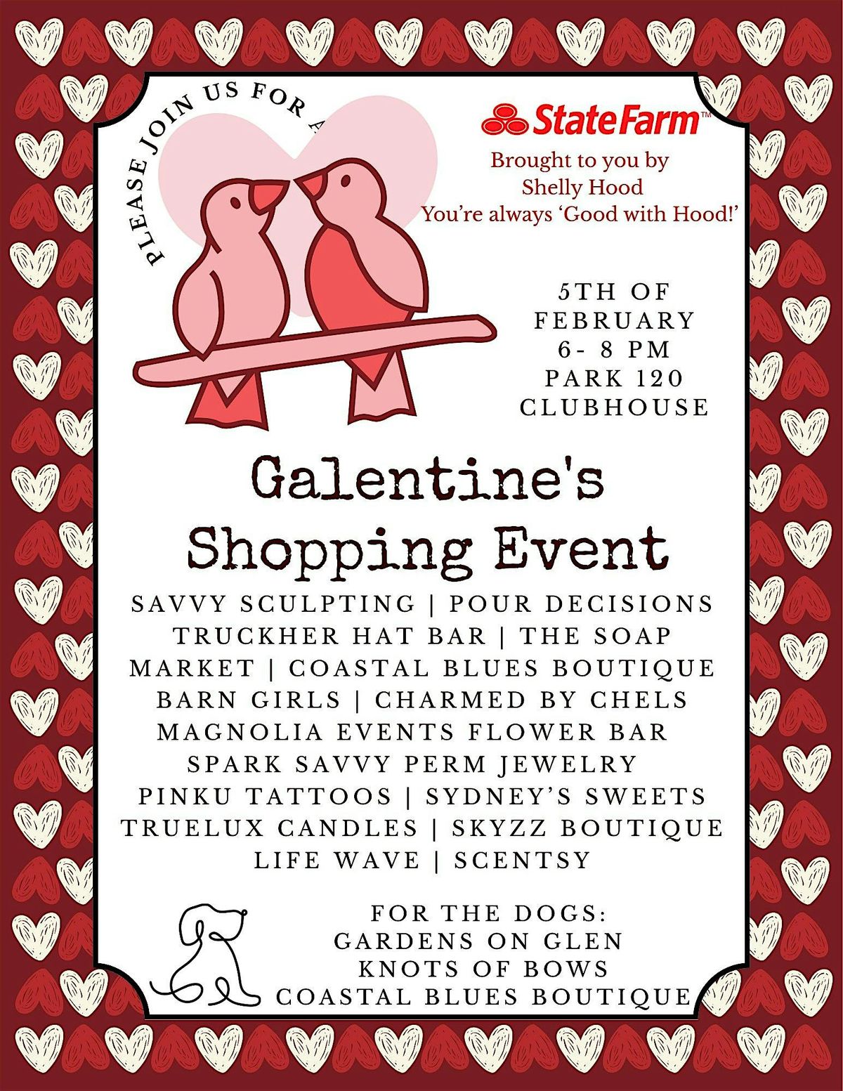 Event is held inside the Park 120 Clubhouse at Oak Hills. Parking is free. Dog friendly so bring your pups to shop!