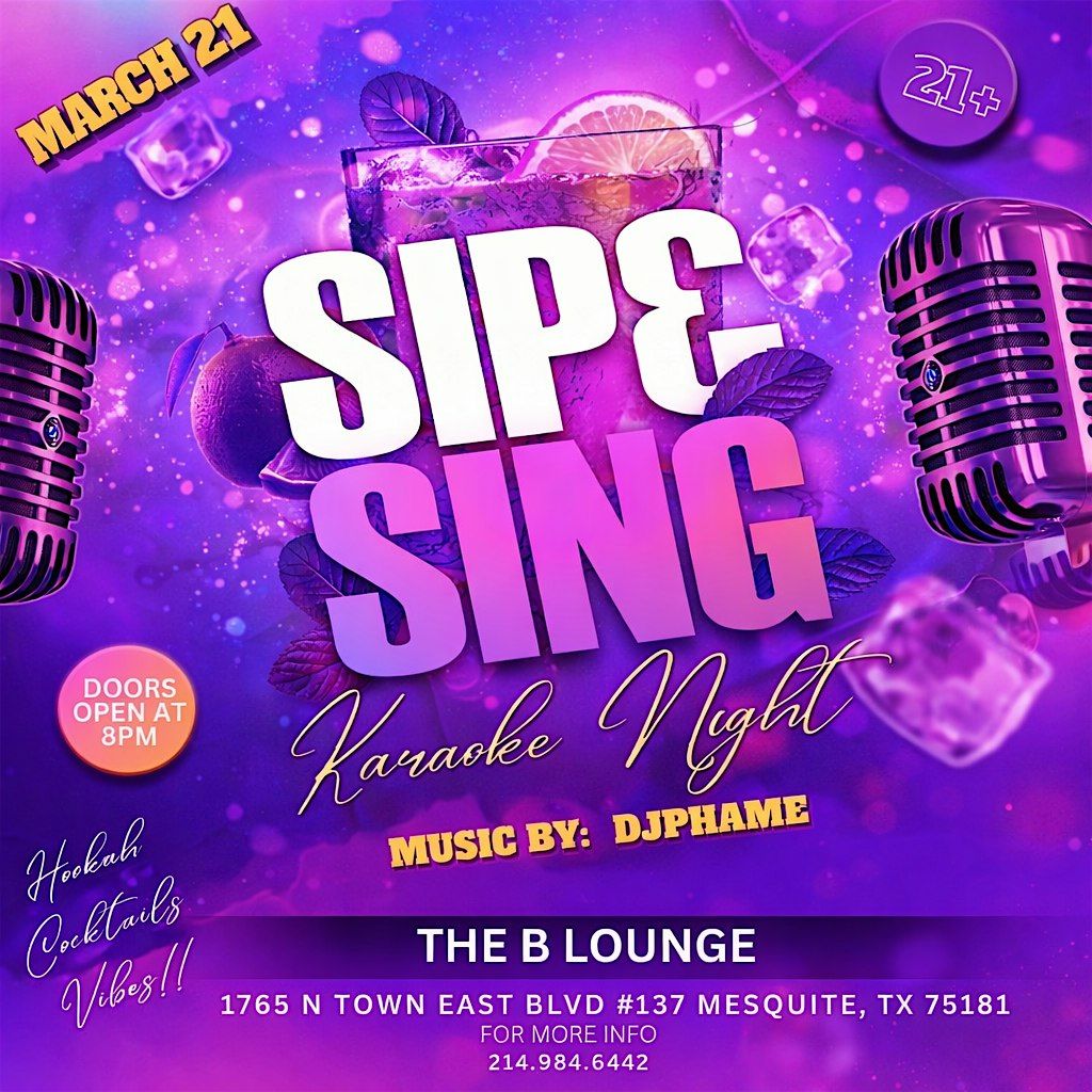 Step into the vibe at The B Lounge for a night where smooth drinks meet smooth vocals! Sip and Sing is your chance to unwind, grab the mic, and let loose with karaoke, cocktails, hookah, and nothing but good energy. Whether you’re singing your heart out or just vibing with the crowd, this night is all about fun, laughter, and memorable moments.