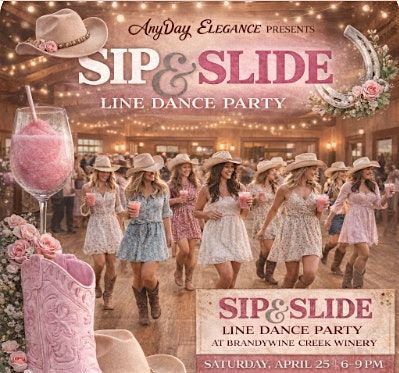Grab your boots, your besties, and your cowboy hats! Join us again for a night of fun, laughter, and line dancing at the Sip & Slide Line Dance Party!