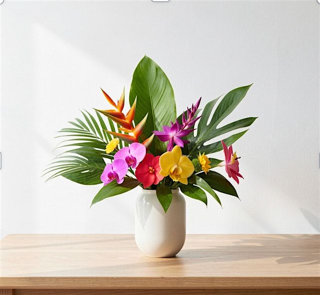 In this hands-on workshop at Alexandria’s at Royal Restaurant, you’ll create a statement arrangement featuring tropical blooms and dramatic foliage. Think bold shapes, playful movement, and flowers that make you feel like you should be sitting on a beach with an endless supply of pina coladas.