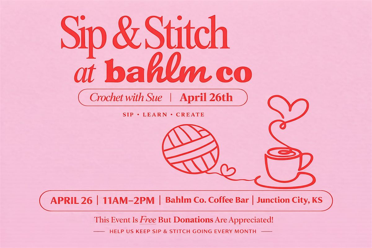 Join us for a cozy and creative Sip & Stitch experience at Bahlm Co. Coffee Bar! Spend your Sunday morning learning the basics of crochet with Sue in a relaxed, beginner-friendly setting. Whether you’ve never picked up a hook or just want to refresh your skills, this hands-on workshop will guide you through your first stitches.