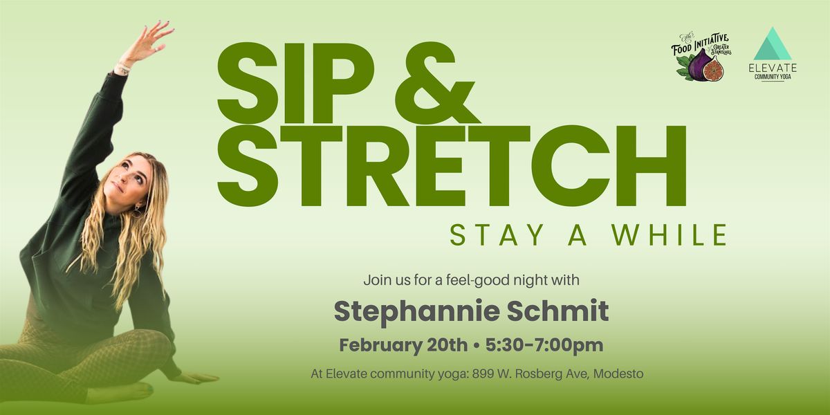 Join us for a Sip & Stretch fundraiser with the one and only Stephannie Schmit, hosted at our favorite community yoga space, Elevate Community Yoga.