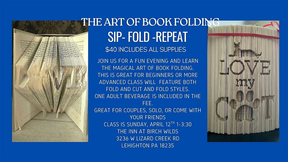 Sip, Fold, Repeat is the perfect blend of creativity and relaxation! Join us for a fun evening where you can unwind and discover the fine art of book folding.