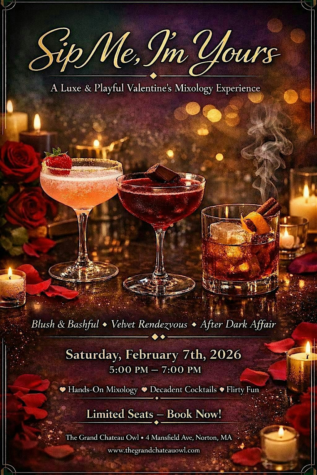 Join us at The Grand Chateau Owl for an unforgettable Valentine’s evening of craft cocktails, flirty fun, and hands-on mixology. Sip Me, I’m Yours is designed for couples, friends, and anyone ready to indulge in a luxurious and playful experience. Guests will enjoy an elevated atmosphere, expertly crafted cocktails, and an interactive mixology experience. Whether you’re celebrating love, friendship, or simply great drinks, this is the perfect way to toast the season.